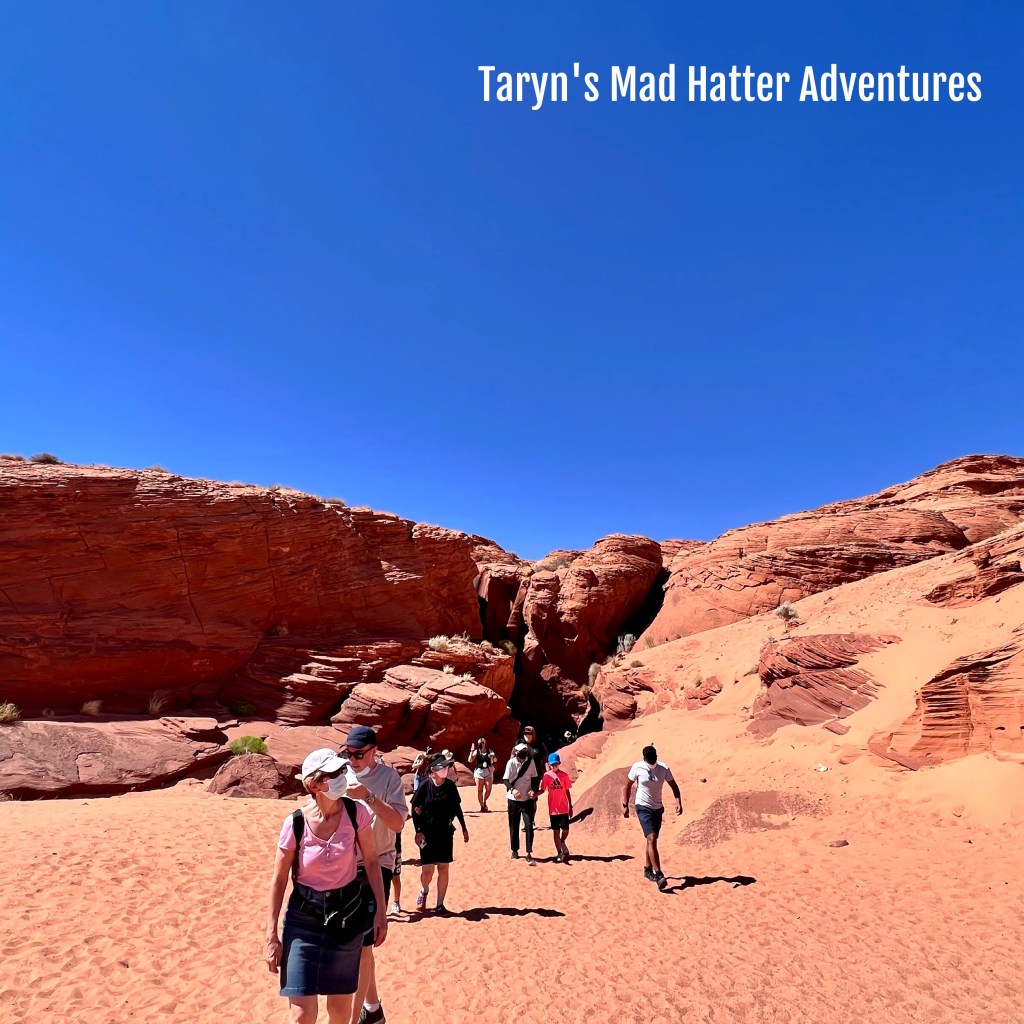 When first researching this trip, this was a “must do” on my list. The photos looked absolutely amazing, and I just wanted to see it for myself! For this “excursion,” you had to book a tour with a company. It is located on a Navajo Reservation and there were a bunch of rules that had to be followed. They stressed the importance of making sure you were there on time because the tour would leave without you, make sure you were in correct time zone, wear a mask, etc. I really wanted the morning tour because of the sunlight and heat factor, but they were completely sold out. The 2:00 p.m. was the only one left. The cost was $90 plus tax per person.