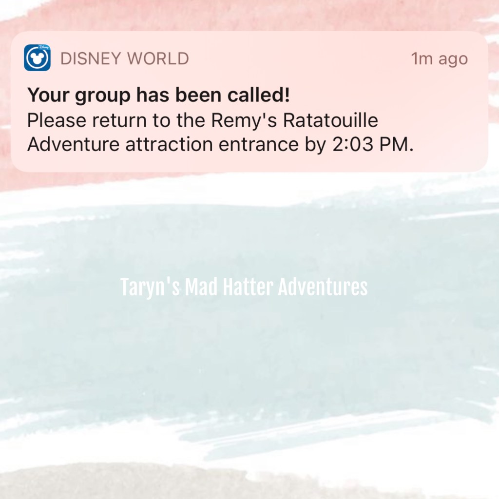 We just briefly whizzed through some countries when our return time was called for the virtual line for Remy’s Ratatouille Adventure. Once your group is called, you have one hour to return to the entrance of the attraction.