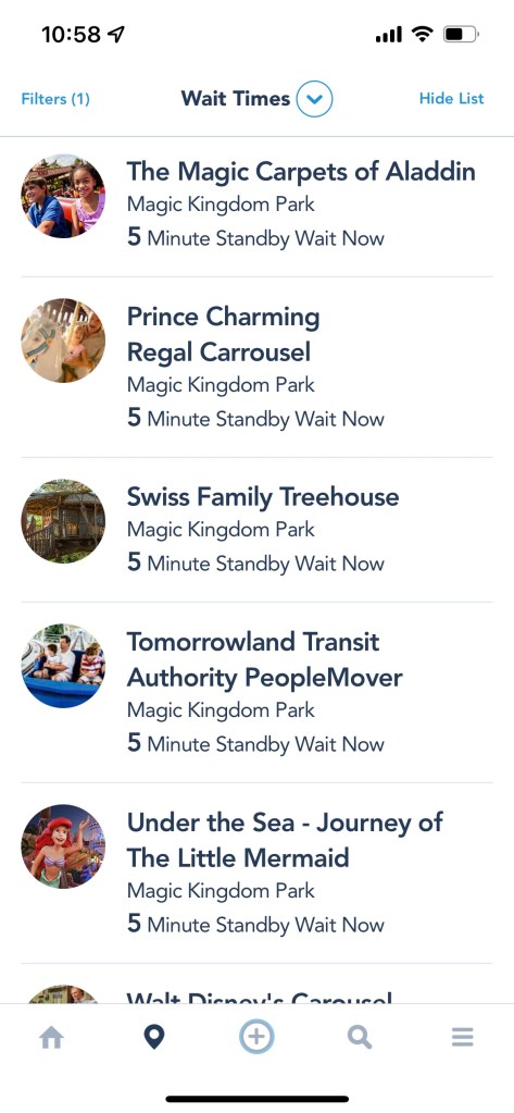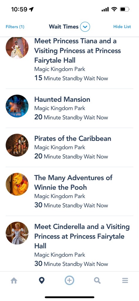 We didn’t really have a plan at all for the morning and afternoon. We checked wait times and decided to go directly to Haunted Mansion. It had a 20 minute posted wait time. From there we went to Pirates of the Caribbean. That was down for the entire morning until now. It had just reopened and we only had a 5 minute wait.