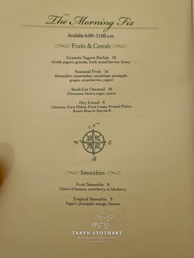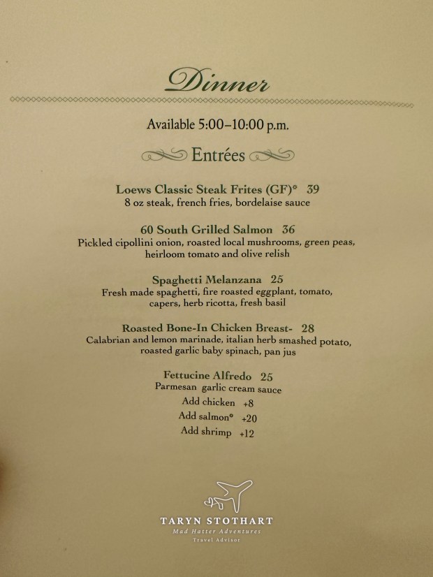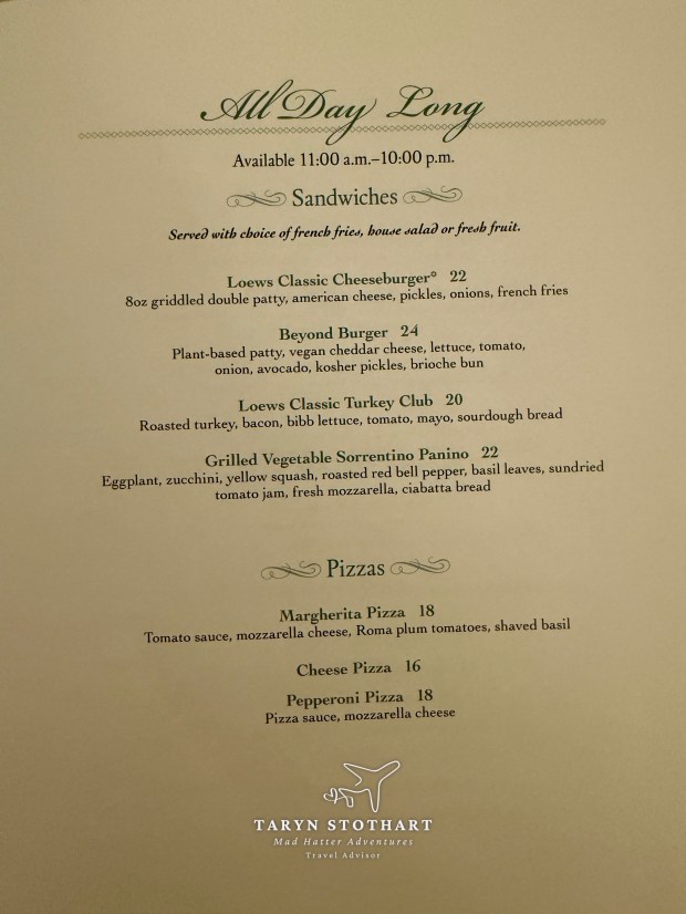 In_Room Dining was an option here. It was extensive, offering many choices for all hours of the day, as well as a menu for cats and dogs!