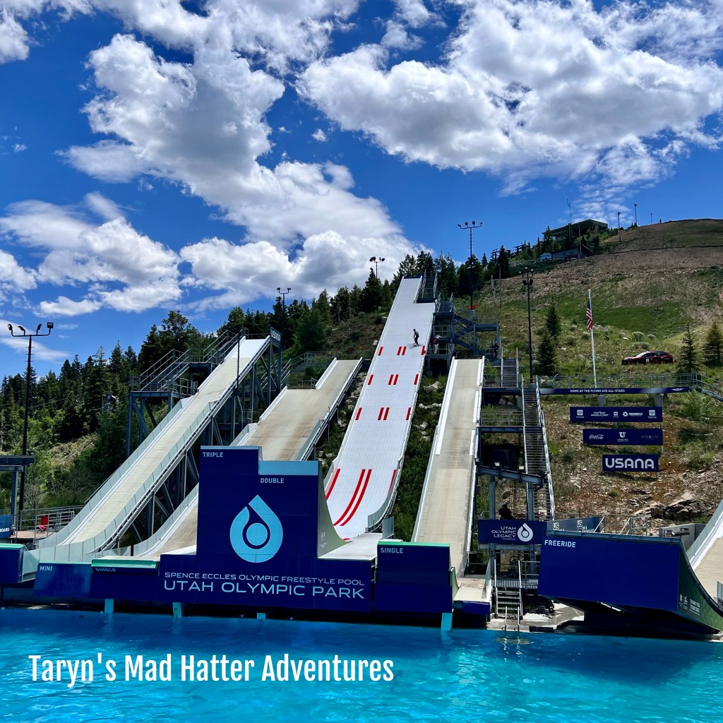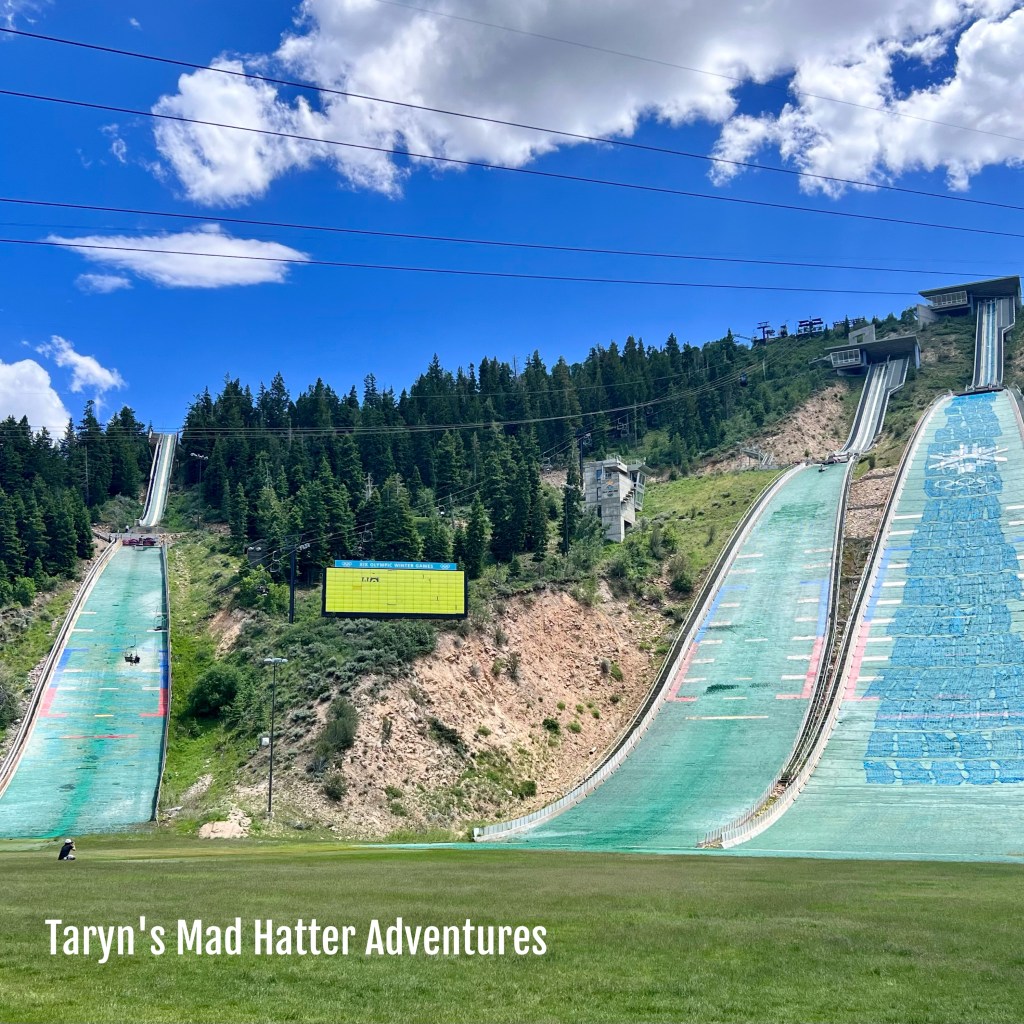 After eating, we drove directly to Utah Olympic Park. We had bought the 3.5 hour Summer Gold Pass Session that included unlimited use of the Alpine Slide, Extreme Tubing, Extreme Zip, Freestyle Zip, Discovery Course, Canyon Course, Drop Tower, Airbag Jumps, and Scenic Chairlifts. This was $85 per person. There are different packages you can purchase, and if you don’t want to purchase anything, you can still go inside and look at the museum and walk around the grounds.