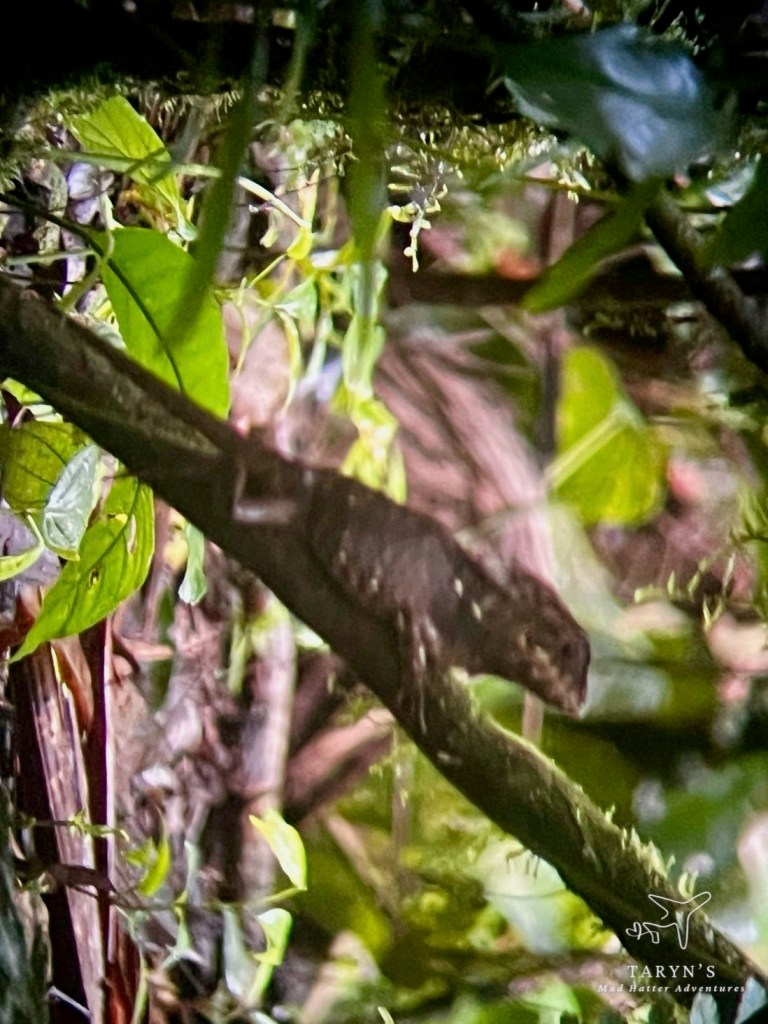It was just starting to rain again. Somehow, some way, Orlando spotted this chameleon! I could NOT find it with the naked eye at all.