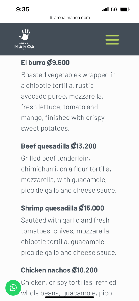 You can see this is an open air establishment. This seems to be the norm in Costa Rica!