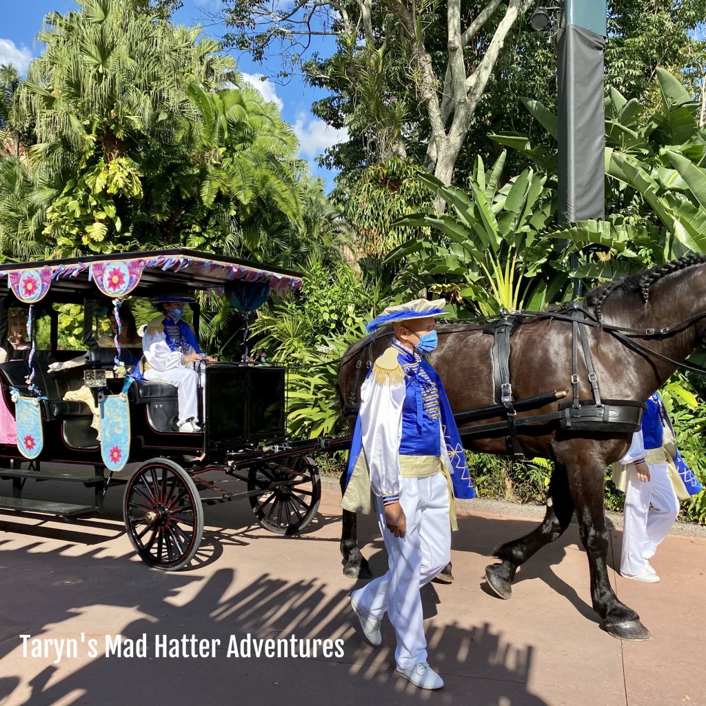 While we were standing there, some cast members came rushing by telling everyone to get to the side, and that a horse and carriage were coming. We had no idea what was going on! All of a sudden, this went by: