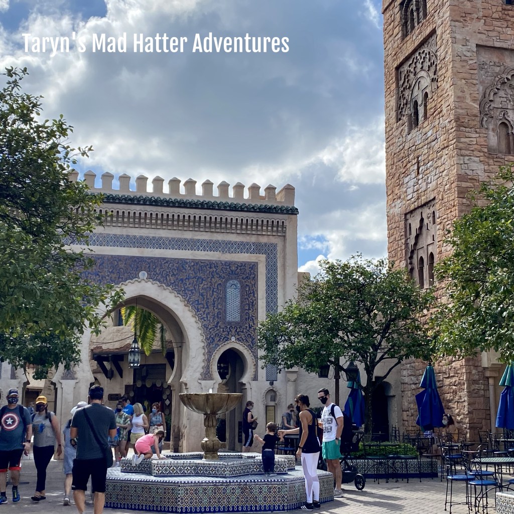 We finished changing and got organized, checked our luggage, and then were at the bus stop at 11:35 a.m. There is no monorail to Epcot at the moment. The bus arrived at 11:45 a.m., and we made it to Epcot at 11:55 a.m. We were hungry for lunch and decided to start with some food booths! We decided to go counter-clockwise starting in Canada because we knew we wanted to eat something from there!