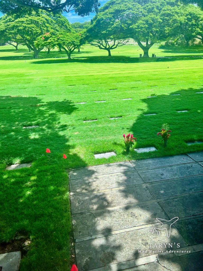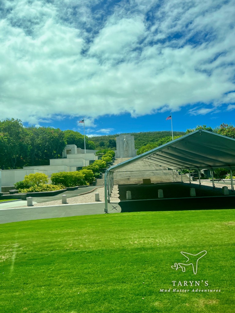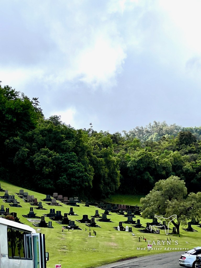 We headed back to the bus to get ready to go to our next drive-by location, Punchbowl Crater. Punchbowl Crater is an extinct volcanic cone in Honolulu, that is the home of the National Memorial Cemetary of the Pacific.