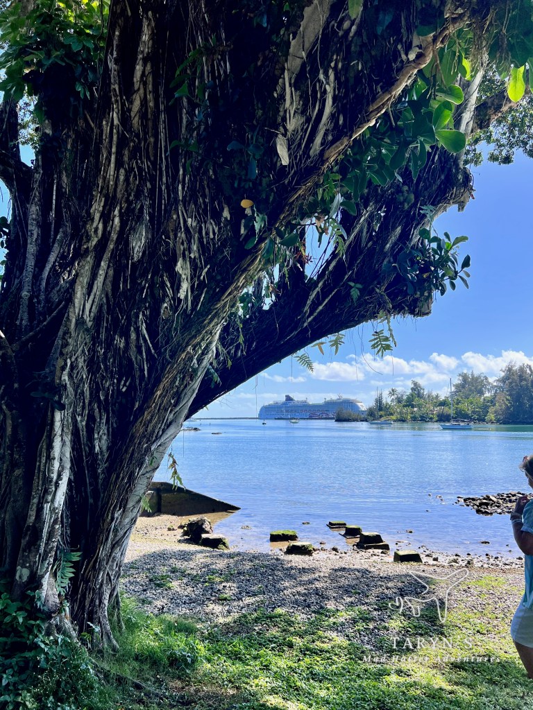 Today we docked in Hilo on the Big Island. This is where the volcano is located, and many were doing that excursion. We instead opted for a Hoppa On Hoppa Off City Tour due to my mom’s limited mobility. Also, my kids and I have been to the volcano before.