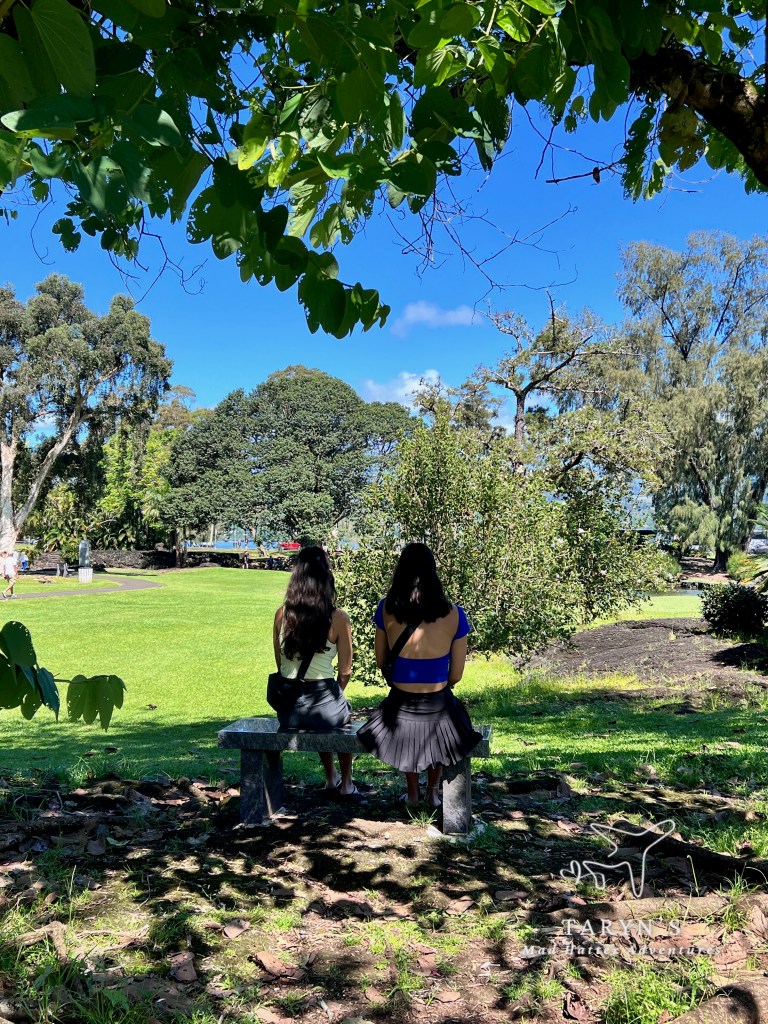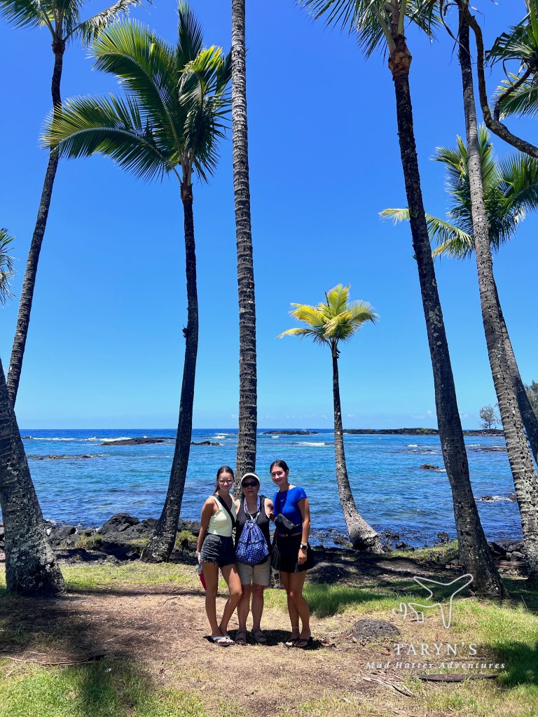 We made our way to the tour office and it was busy! They offer a few different tours, and many were doing the volcano tour. We boarded our bus and were on our way. We drove on Banyan Tree Drive which is composed of a canopy of banyan trees with plaques noting which celebrity planted the tree. Just a few were Amelia Earhart and F.D.R. This route led us directly to Reed’s Bay Beach. We stopped here and were able to get out and walk around and take photos.