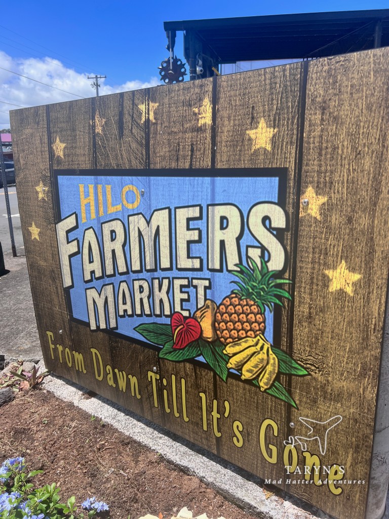 Our final stop was the Hilo Farmers Market. The bus stopped here, and if wanted to get off, we could take any bus back to the tour center when we were finished. They have a “blue line shuttle” that would take us from the tour center to the Blacksand Beach.