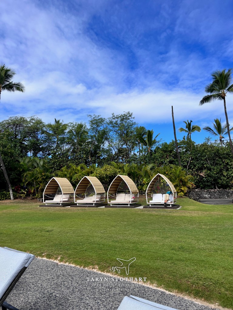 I did some searching before the cruise. We wanted a beach day, but didn’t want to have to travel far in case my mom needed to go back to the ship. I found a cabana right at the end of the dock at Courtyard by Marriott King Kamehameha’s Kona Beach Hotel. It was $200.00 for a cabana from 8:00 a.m.-5:00 p.m. I could pick exactly which cabana I wanted and I booked directly on their website.