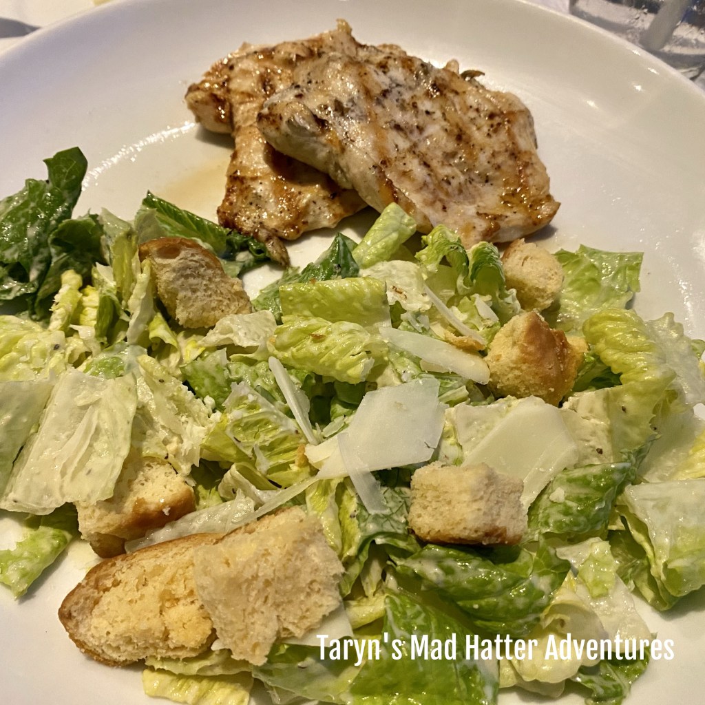 This salad was also different than I remember. It was good though. The dressing had a good flavor and was very light. I’m not a huge fan of cranberries, and these were a non-factor really.